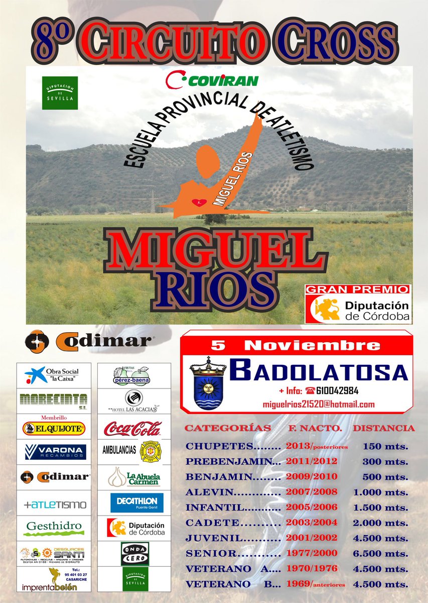 Badolatosa acoge el domingo 5 de Noviembre el I Cross "Los Bermejales", que es a su vez la primera prueba del VIII Circuito de Cross de la Escuela Provincial de Atletismo Miguel Ríos.
