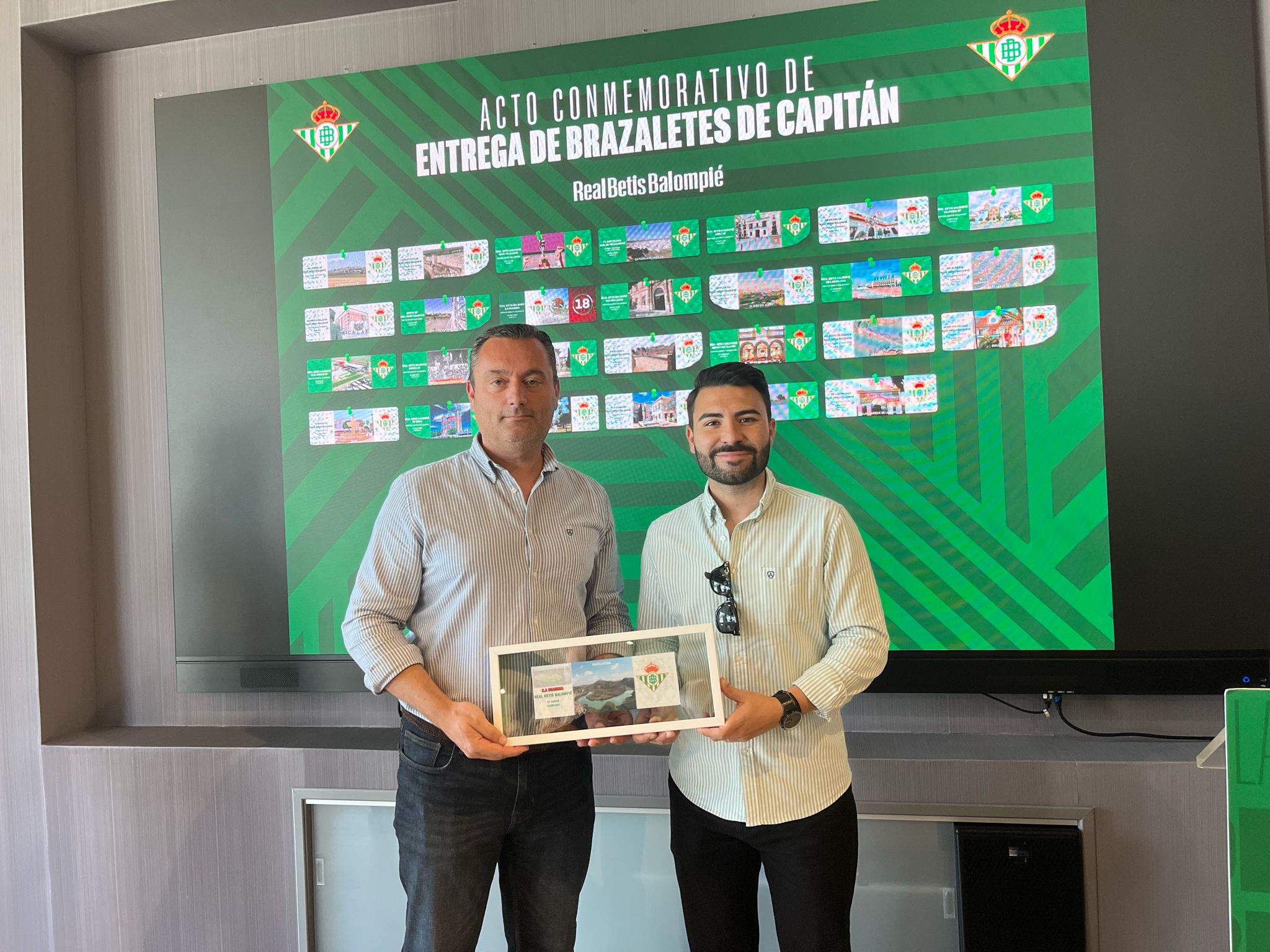 Esta mañana, a las 12:30h, se ha llevado a cabo en la Ciudad Deportiva Luis del Sol del Real Betis Balompié un acto en el que el club verdiblanco ha reconocido a los municipios e instituciones a las que se dedicaron los brazaletes en las temporadas 2022/23 y 2023/24