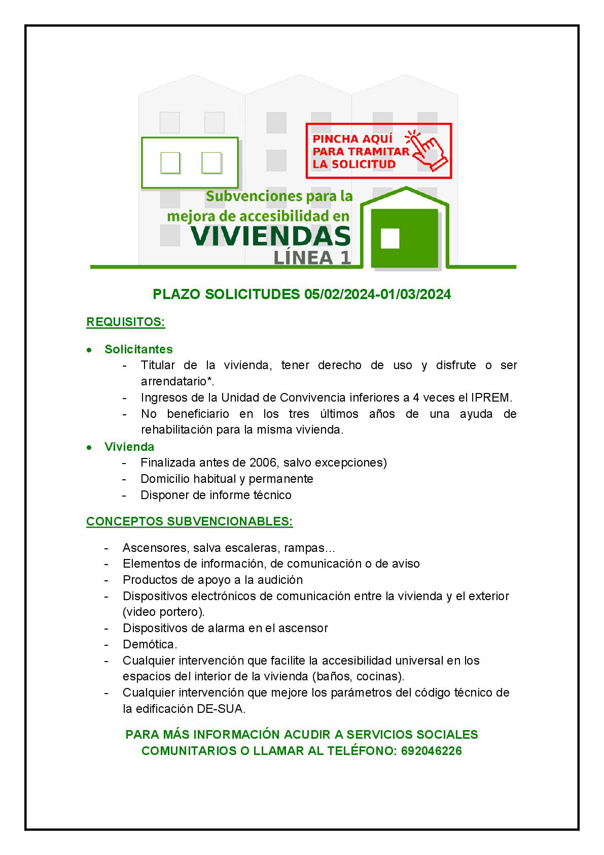 Desde el Ayuntamiento, informamos que hasta el 1 de marzo de 2024 se pueden solicitar las subvenciones para la mejora de la accesibilidad general en las viviendas (Línea 1) de la Junta de Andalucía.