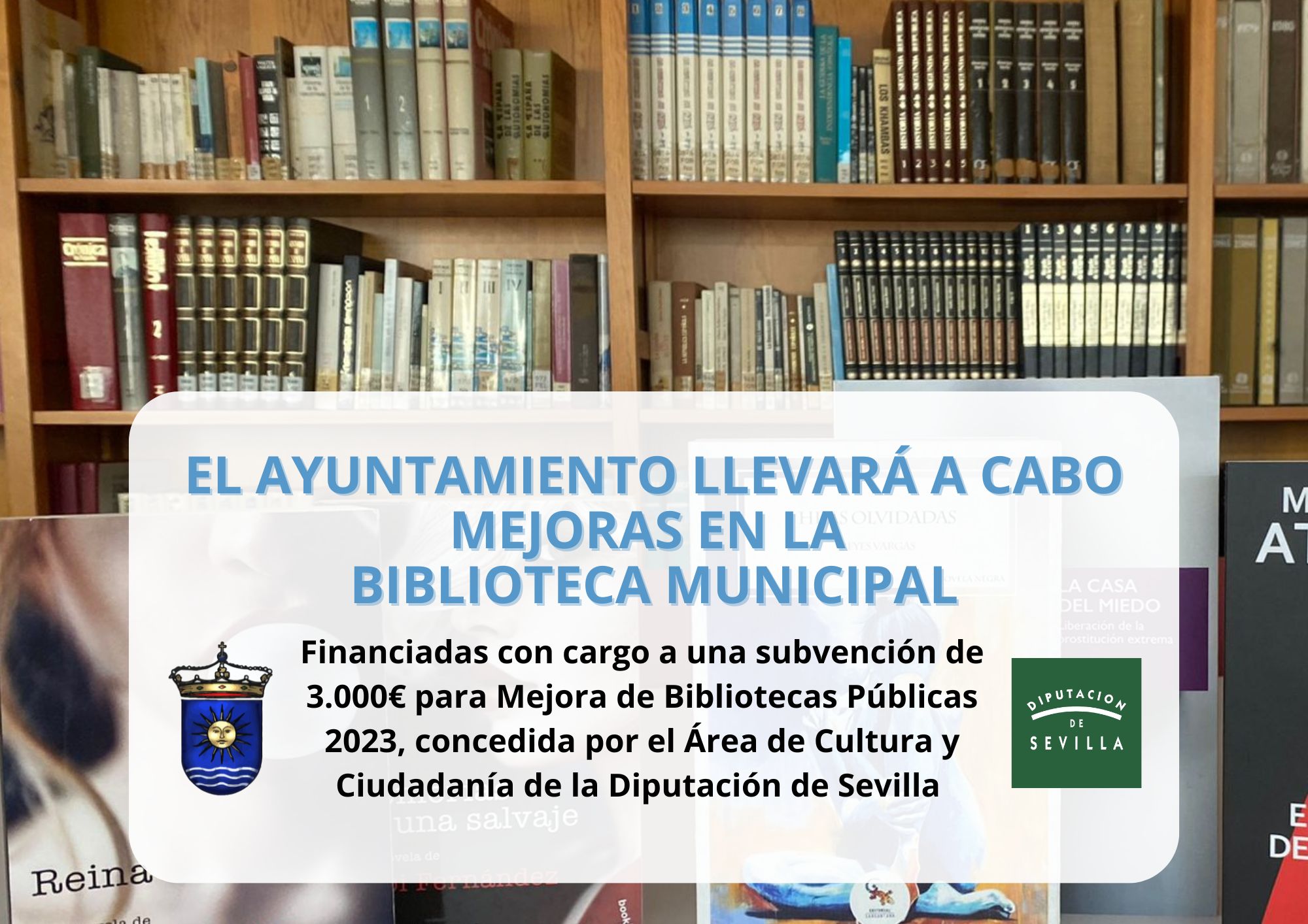 Esta actuación va a ser financiada con cargo a una subvención de 3.000€. para Mejora de Bibliotecas Públicas 2023, concedida por el Área de Cultura y Ciudadanía de la Diputación de Sevilla.