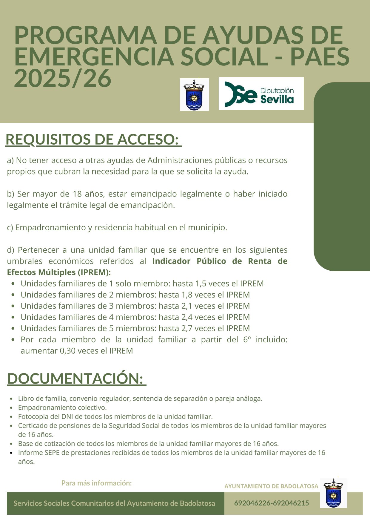 El Ayuntamiento informa que ya está abierto el plazo para solicitar la inclusión en el Programa de Ayudas de Emergencia Social (Convocatoria 2025/26).