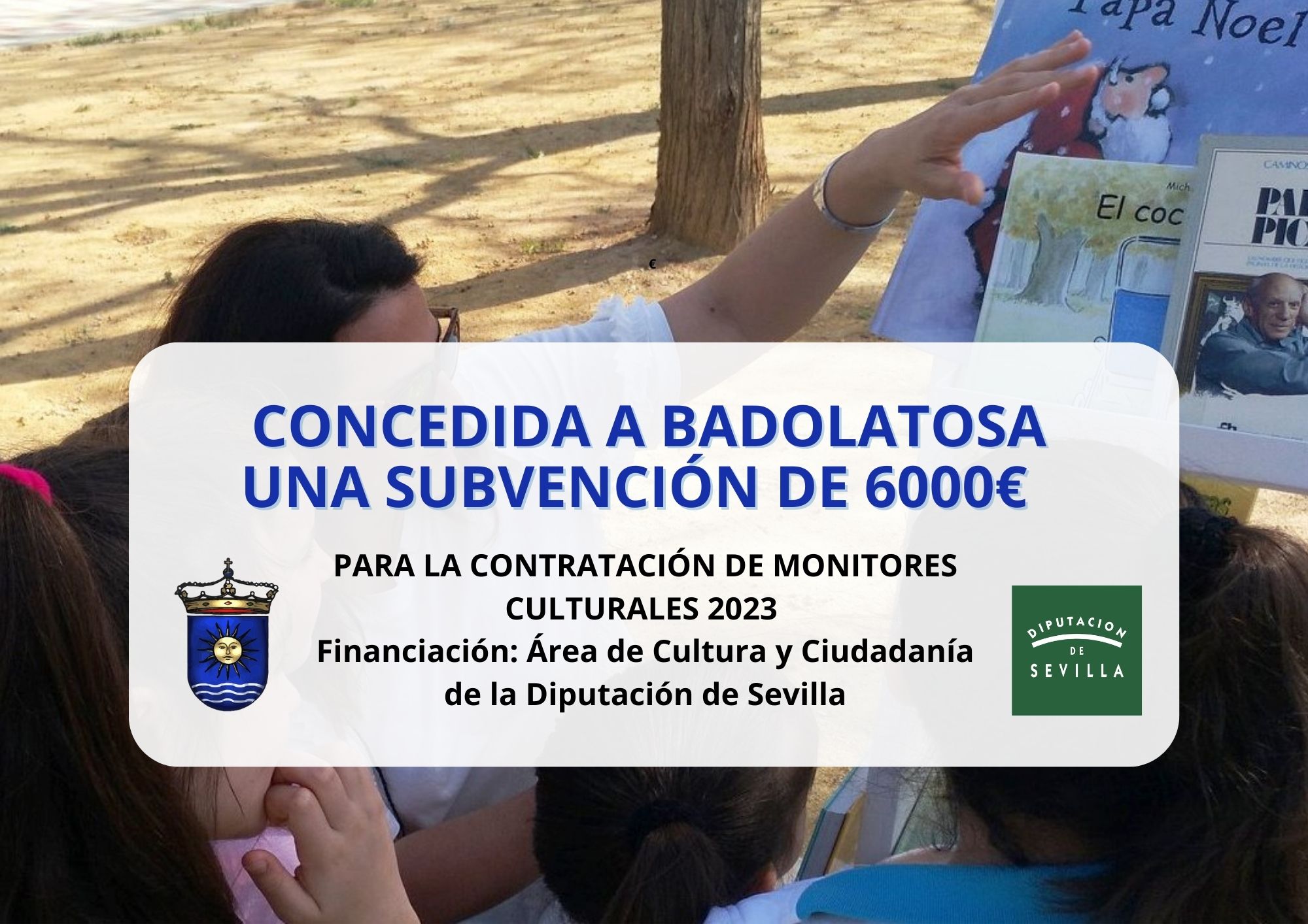Nuestro municipio ha sido subvencionado con 6.000€ del Área de Cultura y Ciudadanía de la Diputación de Sevilla para la contratación de Monitores Culturales, correspondiente al año 2023.
