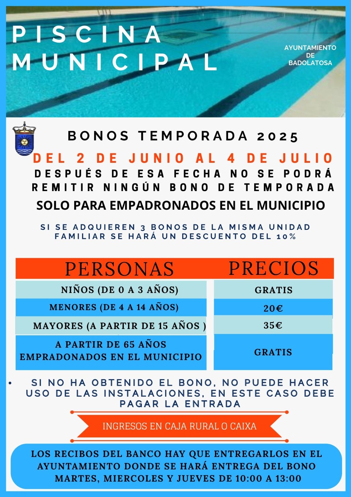 BONOS PARA LAS PISCINAS MUNICIPALES DE BADOLATOSA Y CORCOYA – TEMPORADA 2025
