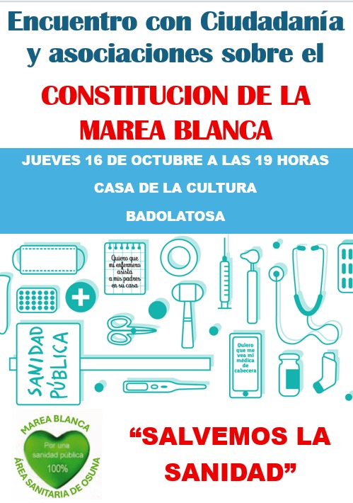 Desde Marea Blanca Sierra Sur se convoca a nuestros vecinos y vecinas, así como a asociaciones locales a una reunión abierta con el objetivo de constituir la Marea Blanca de Badolatosa.