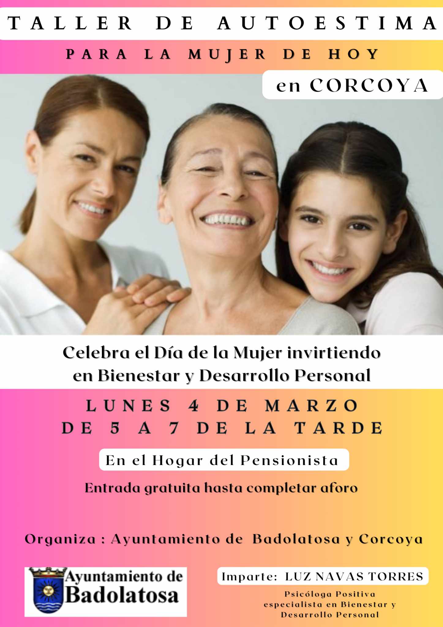 EL 4 DE MARZO TENEMOS UN TALLER DE AUTOESTIMA EN CORCOYA