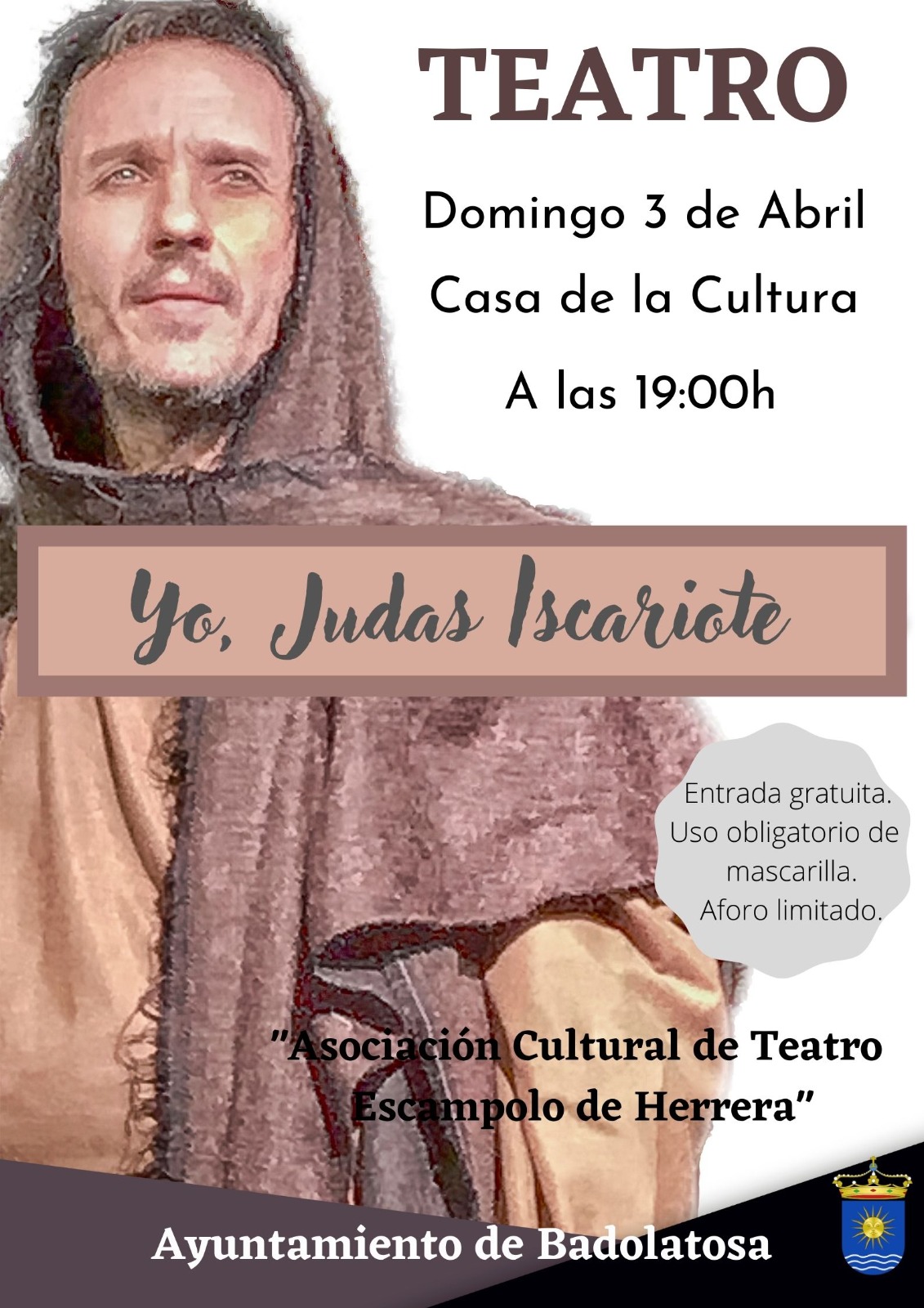 EL DOMINGO 3 DE ABRIL TENEMOS EN LA CASA DE LA CULTURA LA REPRESENTACIÓN TEATRAL DE ‘YO, JUDAS ISCARIOTE’