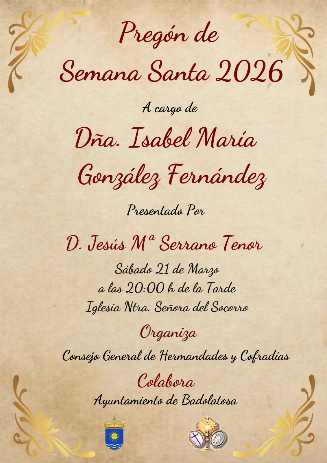 EL PREGÓN DE LA SEMANA SANTA DE BADOLATOSA SE CELEBRARÁ EL SÁBADO 21 DE MARZO