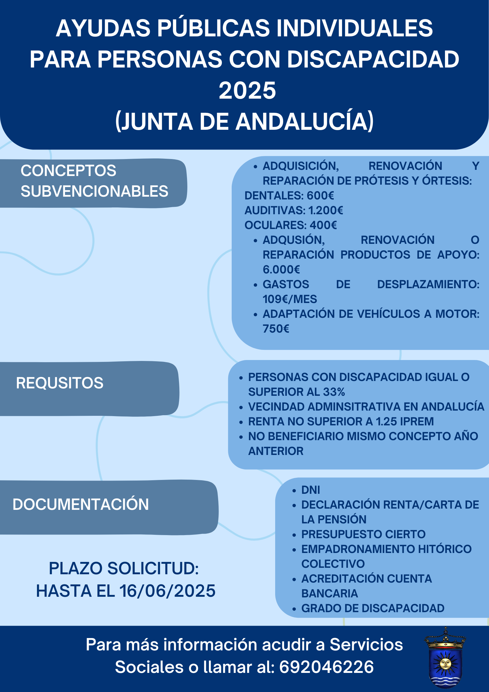 Para resolver dudas o recibir asesoramiento, las personas interesadas pueden acudir a los Servicios Sociales Comunitarios o llamar al teléfono 692 046 226.