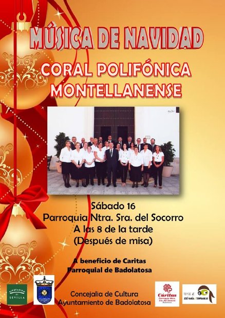 Dando continuidad a la programación puesta en marcha desde la Delegación de Cultura y Festejos del Ayuntamiento de Badolatosa, este sábado 16 de Diciembre queremos dar la bienvenida a la Navidad con un concierto de Campanilleros, de la mano de la Coral Polifónica de Montellano, rque ya nos visitó el año pasado y gustó mucho,.