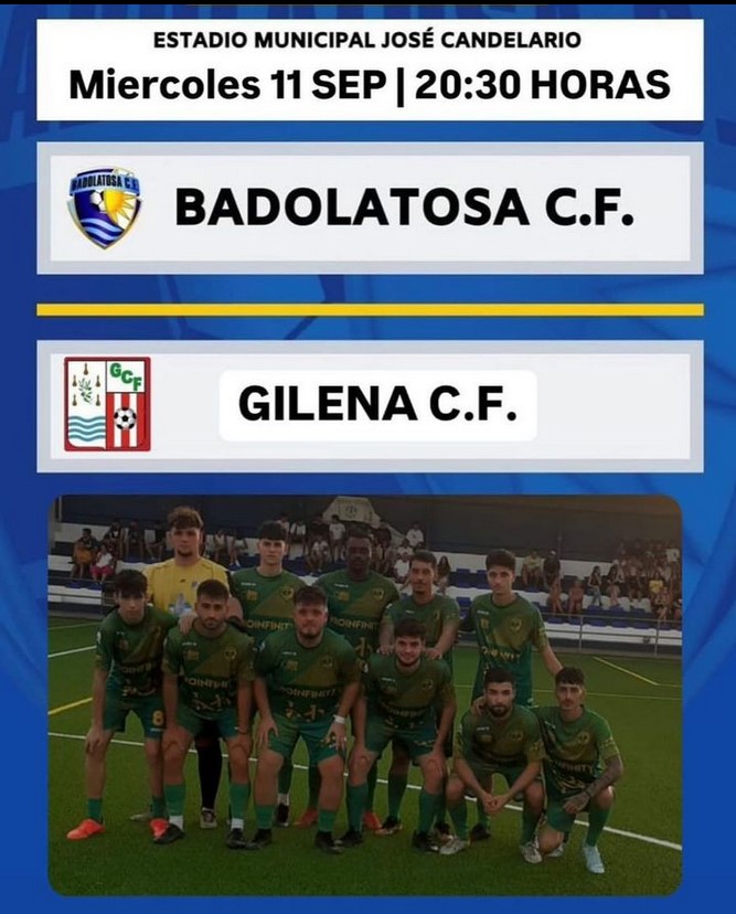 Esta tarde, a las 20:30h, se celebra un partido de pretemporada que enfrentará al Badolatosa CF contra el Gilena CF.¡Os esperamos!