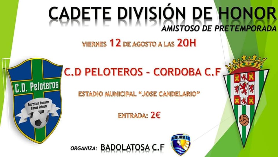 Nos visitan los equipos cadetes de división de honor del CD Peloteros y el Córdoba, CF.