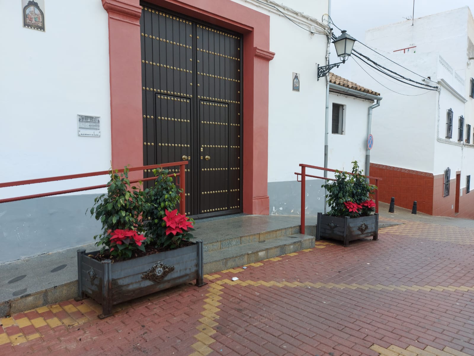 La Plaza de la Iglesia luce ya con decoración navideña. Ayer se colocaron macetas de Flor de Pascua (Pascuelos) adornando la entrada de la parroquia y la plaza de la iglesia para impregnar la zona de ambiente navideño durante estos días festivos que se avecinan.