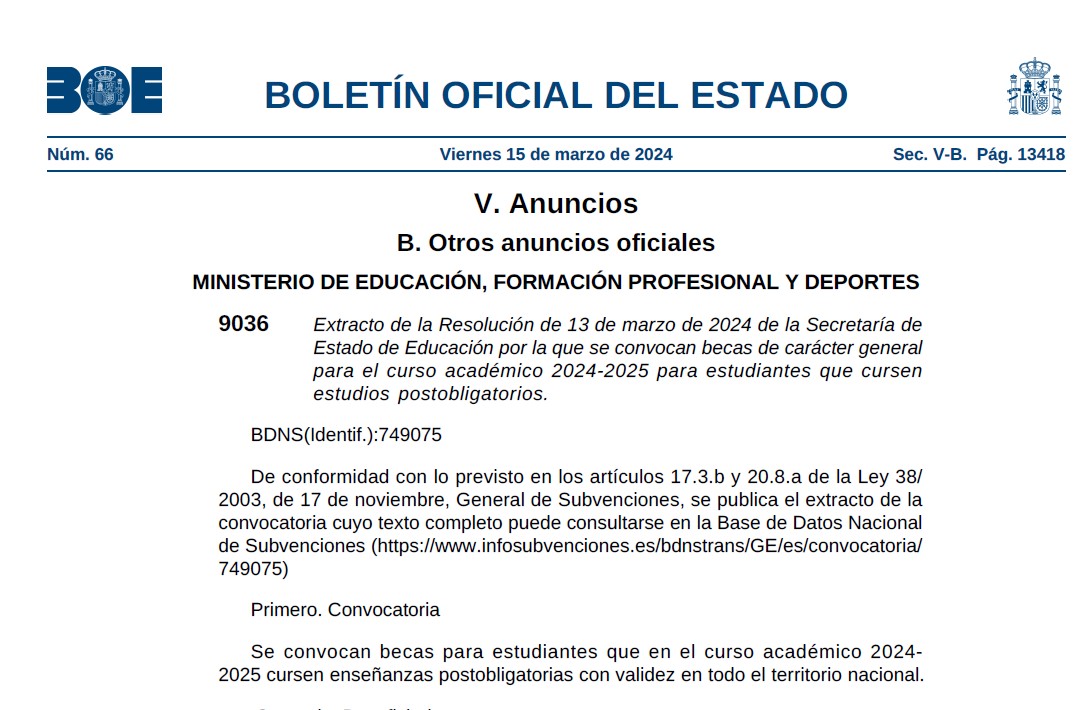 LAS BECAS MEC CURSO 2024-2025 PODRÁN SOLICITARSE DEL 19 DE MARZO AL 15 DE MAYO DE 2024