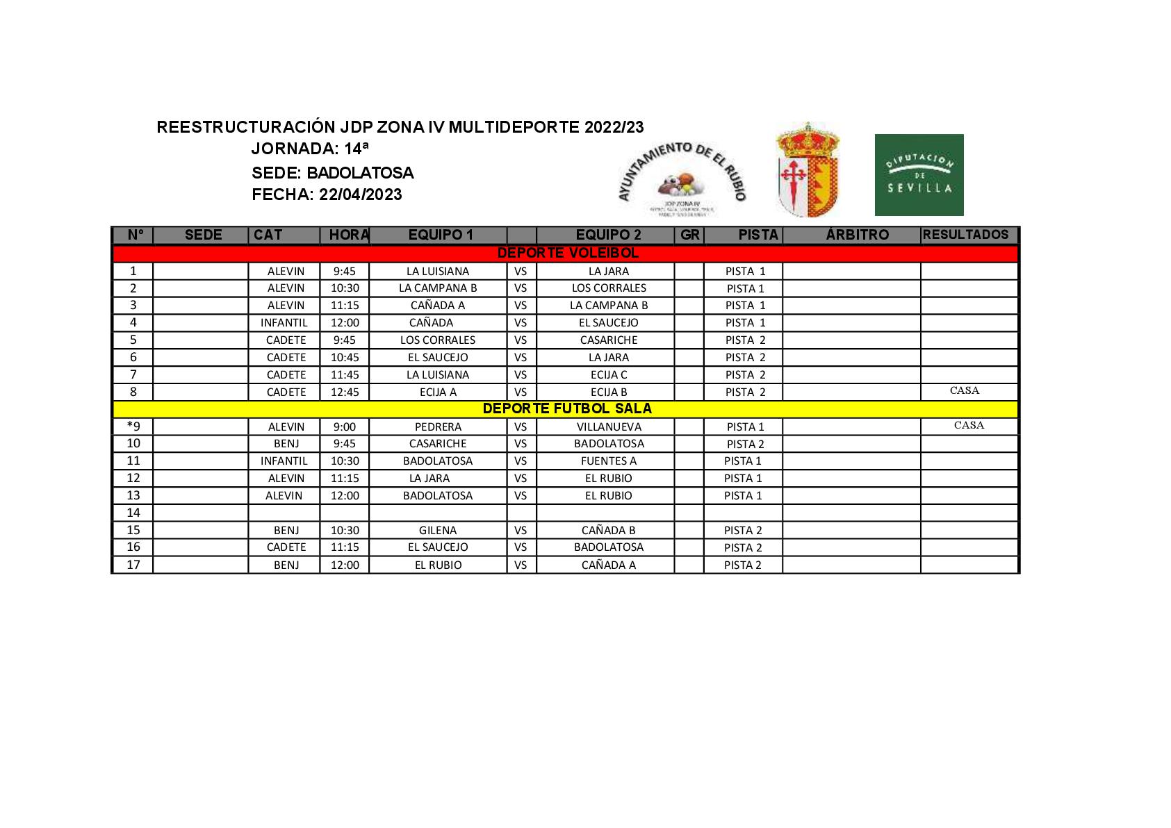 Mañana sábado nos espera también una gran jornada deportiva en nuestra localidad, ya que, como ya informamos, somos sede de una Jornada Multideporte de los Juegos Deportivos Provinciales de Diputación. Durante toda la mañana, se disputarán partidos de distintas modalidades deportivas. Será la ocasión perfecta para la apertura oficial de las dos nuevas pistas de pádel.