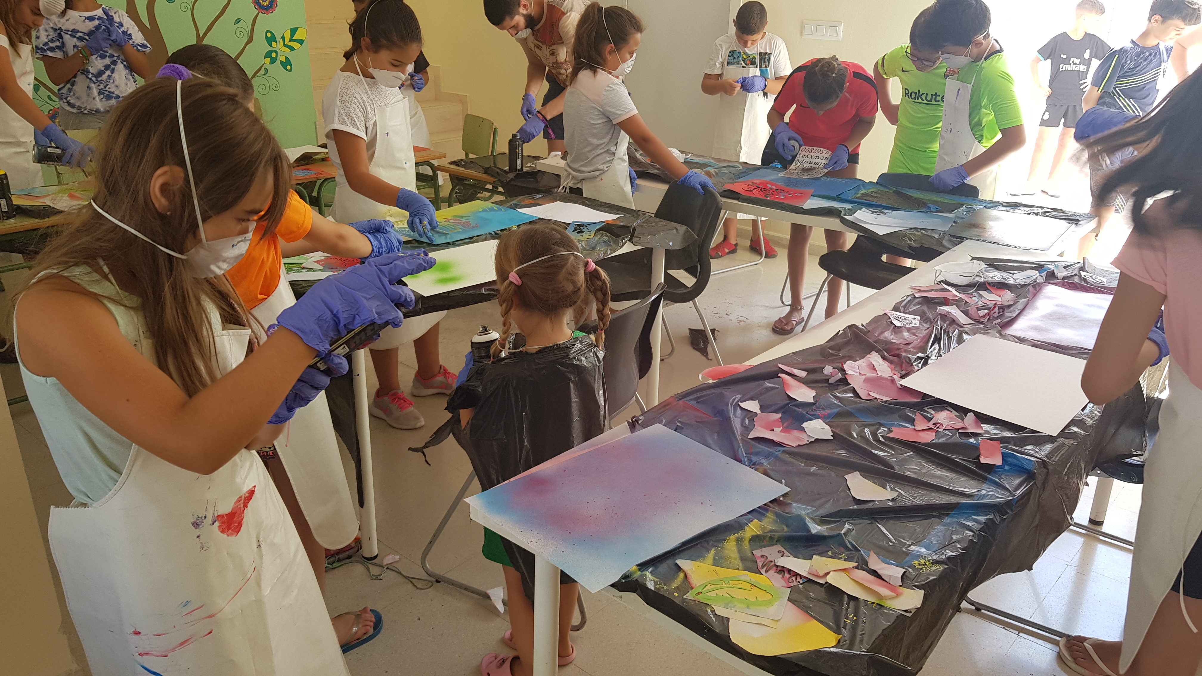 La mañana del martes 9 de Julio resultó de lo más creativa para l@s niñ@s que participaron en el Taller de Arte-Spray impartido en la Casa de la Juventud a partir de las 11.