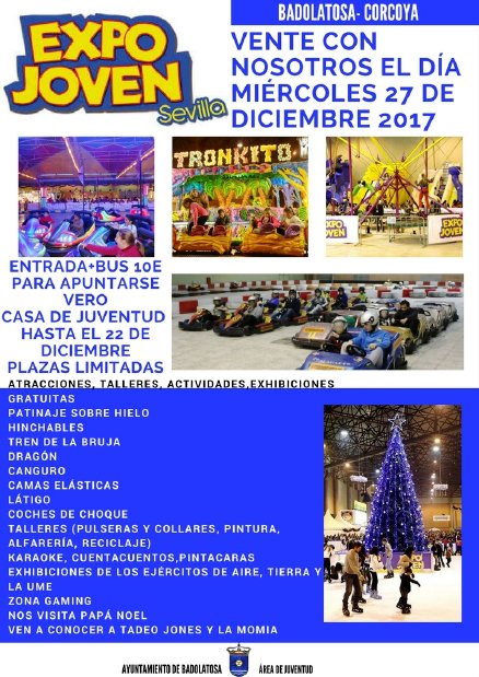 Si quieres pasar un magnífico día en la Feria del Ocio en Familia esta Navidad, vente con nosotros a EXPO JOVEN SEVILLA el miércoles día 27 de Diciembre. El coste de la entrada para todo el día más el autobús es de 10 Euros/persona. Hay un montón de actividades atractivas, atracciones, talleres, exhibiciones.