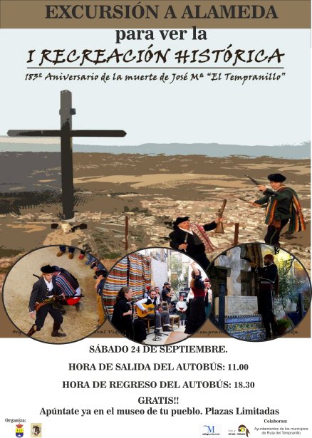 El Ayuntamiento de Badolatosa ha organizado una excursión a Alameda (Málaga) para asistir, el próximo 24 de Septiembre, a la I Recreación Histórica del Bandolerismo Romántico del S. XIX con motivo del 183º aniversario de la muerte de José Mª El Tempranillo.