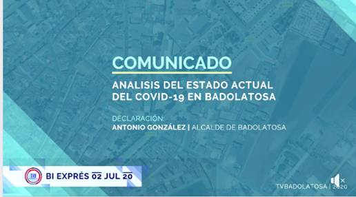 El Alcalde de Badolatosa y Corcoya, Antonio Manuel González, informa sobre la última hora de la pandemia del Covid-19 en nuestro pueblo y otros asuntos de interés: (aprovisionamiento de mascarillas y material de prevención, desarrollo del plan de empleo extraordinario Covid-19, ....)