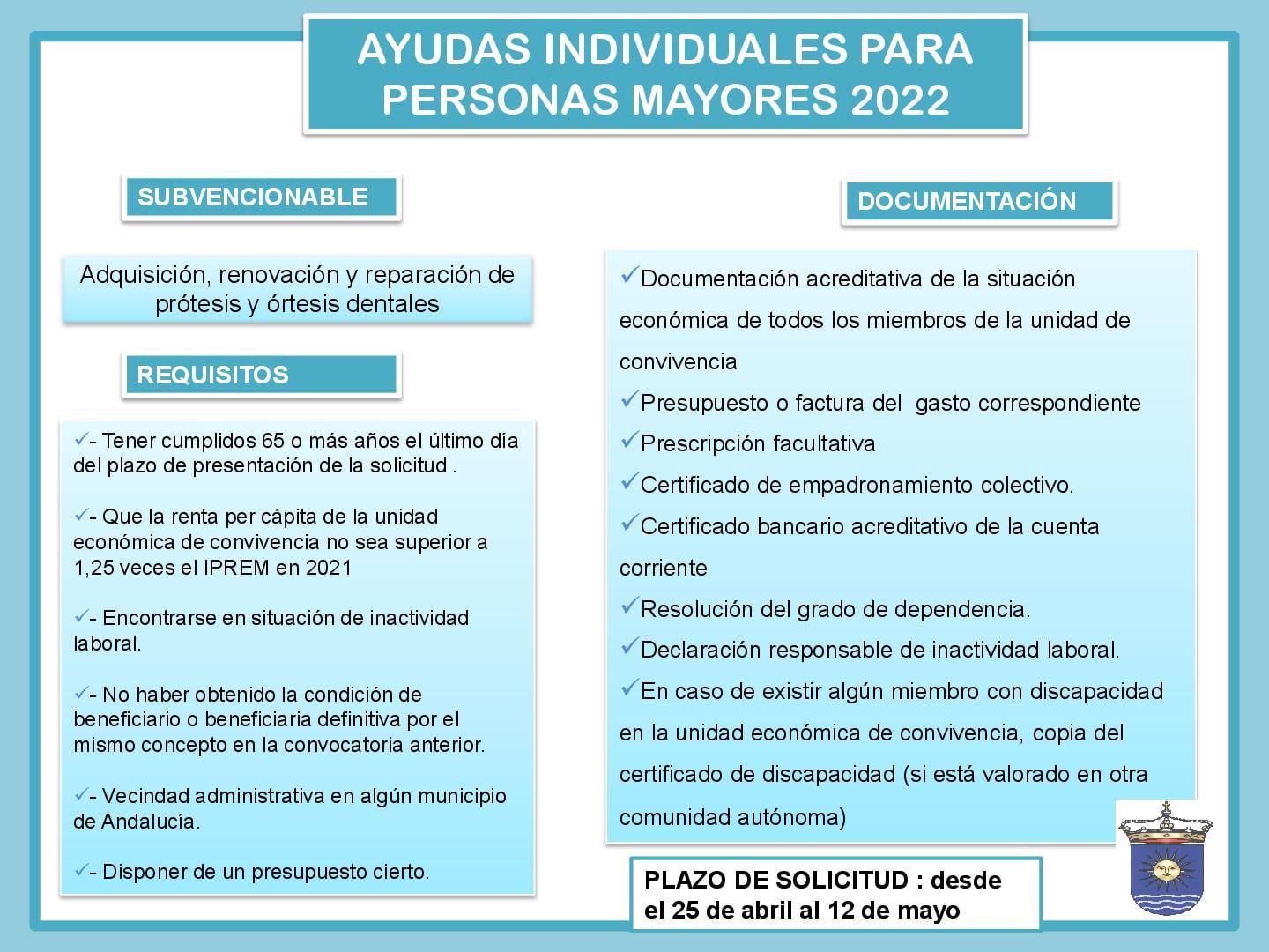 YA PUEDEN SOLICITARSE LAS AYUDAS INDIVIDUALES A MAYORES Y/O PERSONAS CON DISCAPACIDAD (CONVOCATORIA 2022)